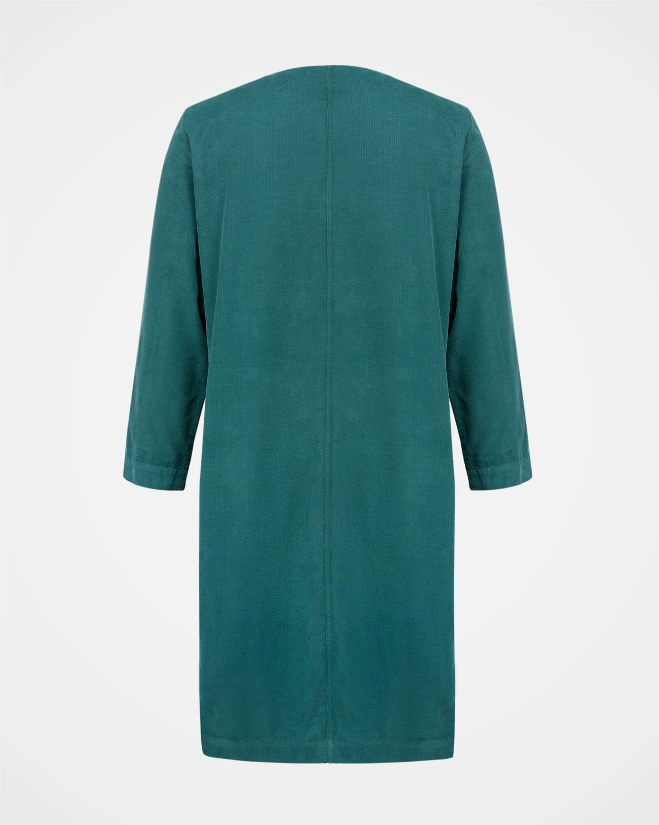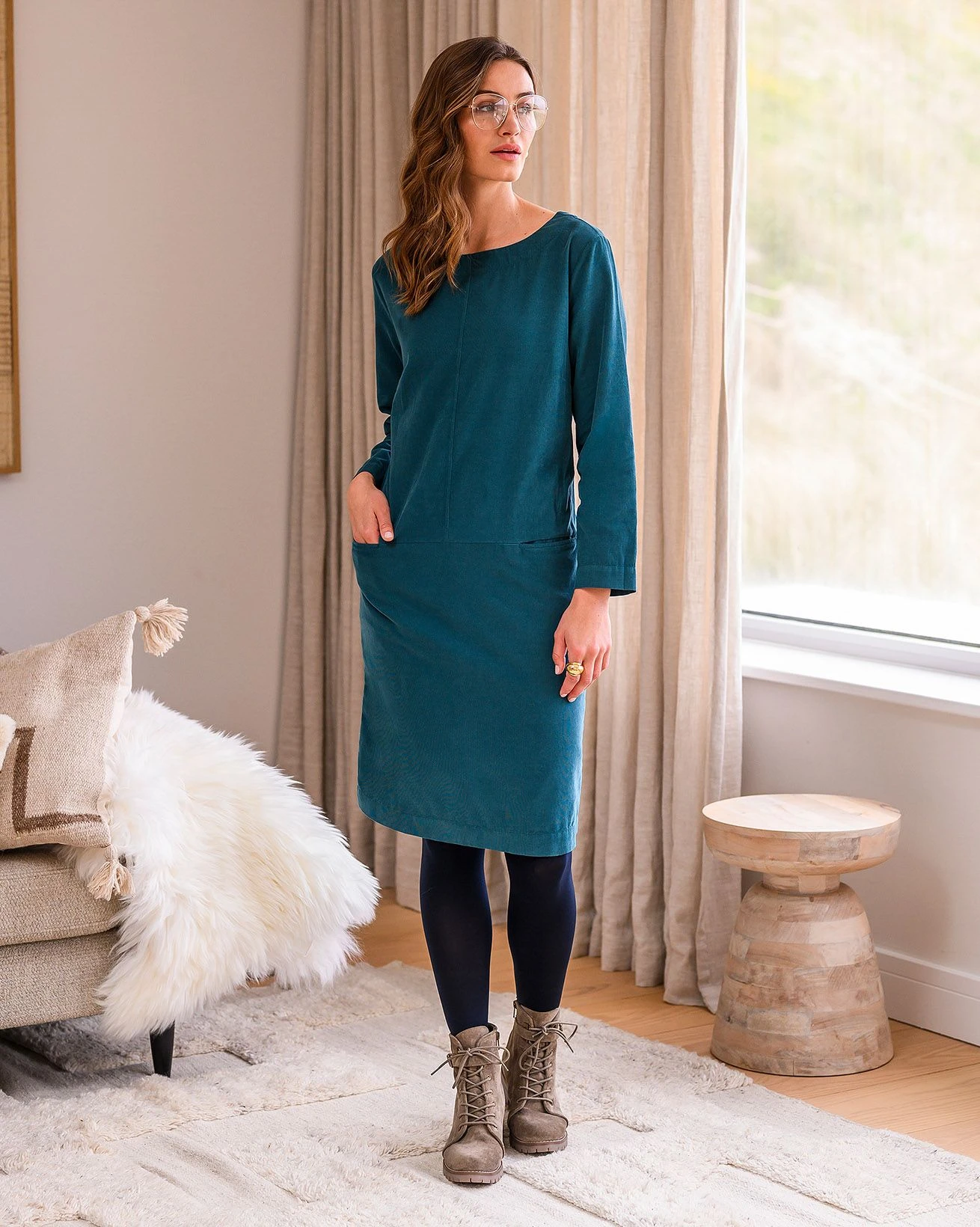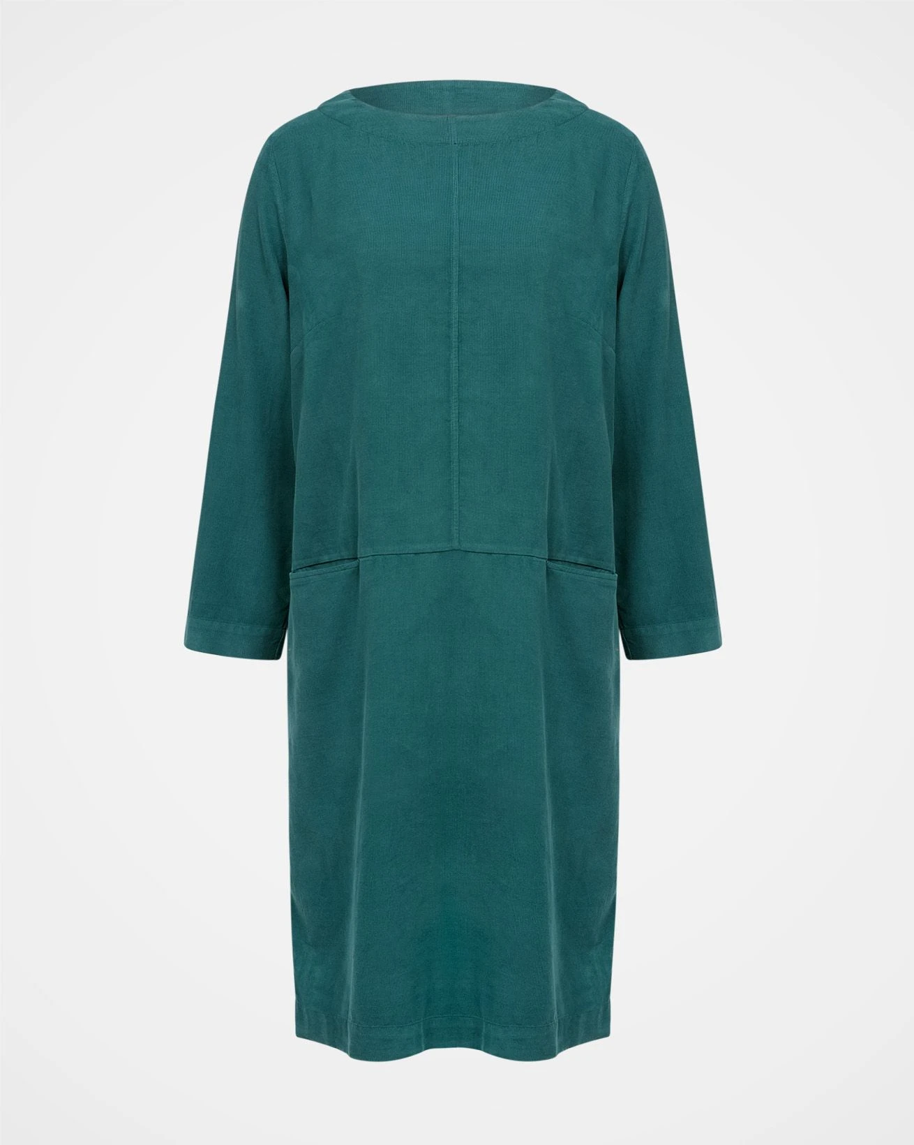 Indulge in comfort with this knee-length shift dress. Crafted from soft baby cord, it provides a relaxed fit and features practical pockets. With its crew neckline, it’s a versatile piece suitable for all occasions.