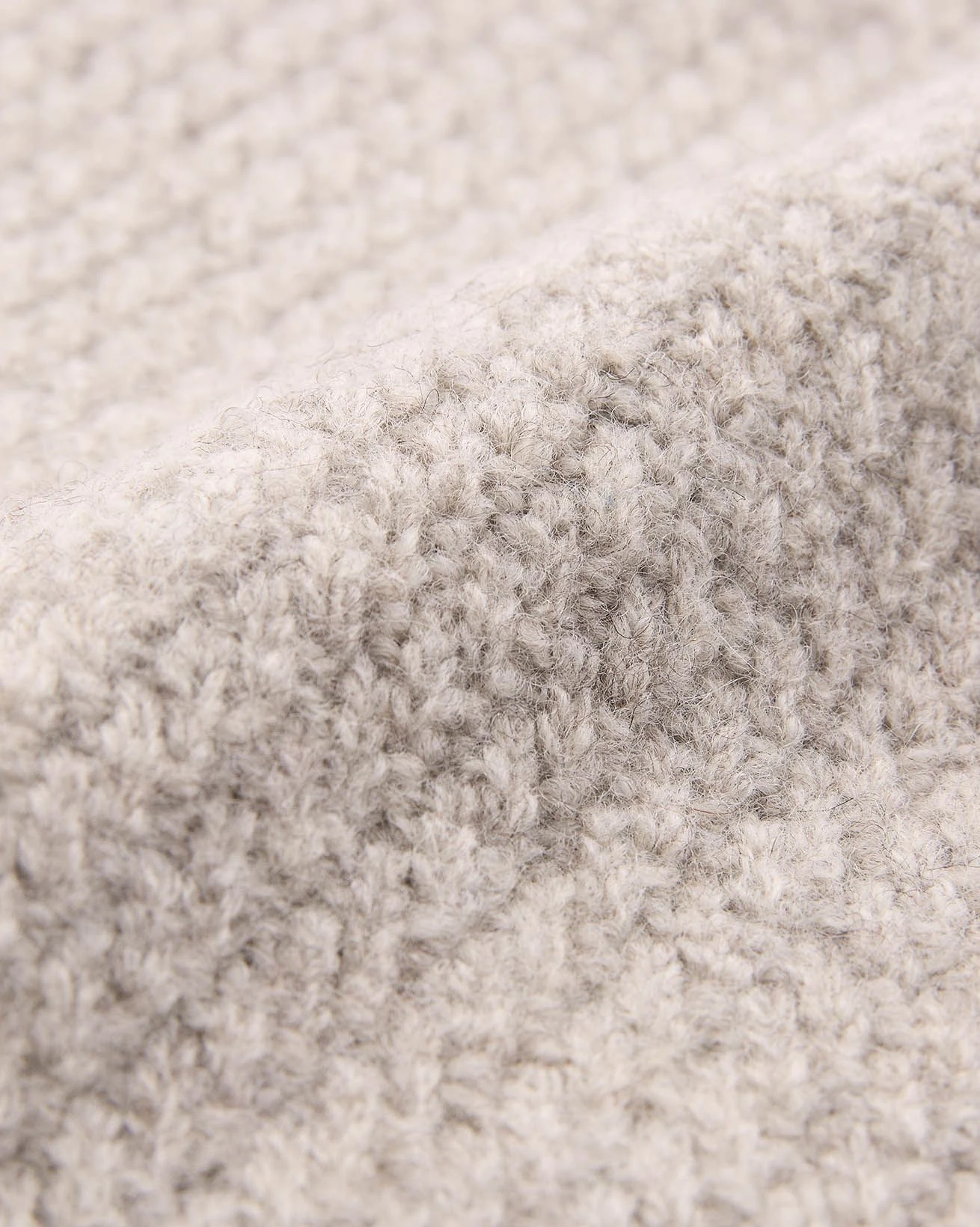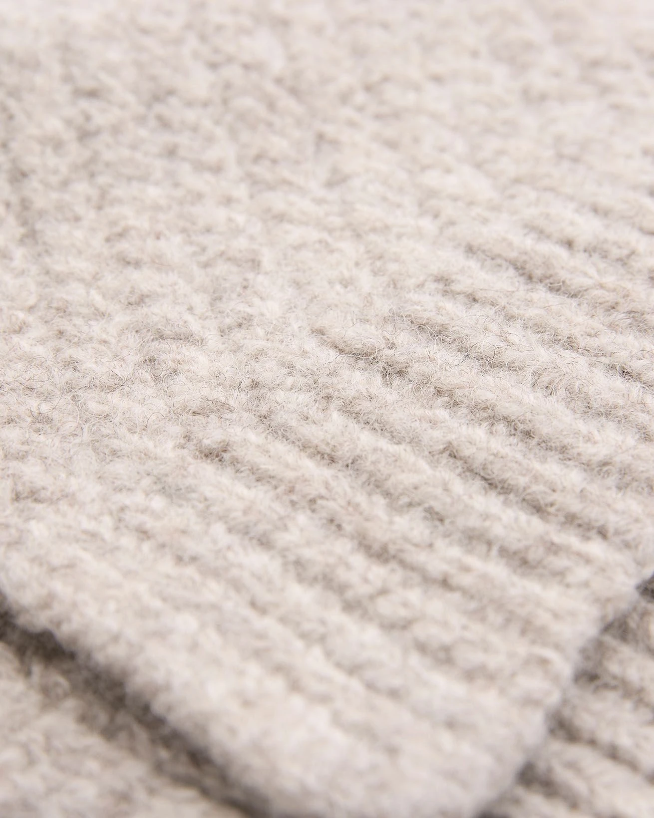 - Featuring Gansey Style Stitch with Ribbed Turn Back