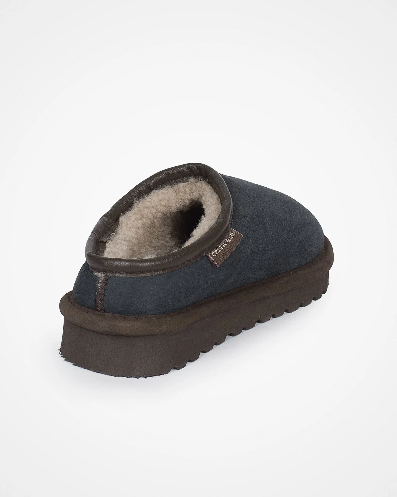 Designed with a slightly raised back for stability as you go about your lazy day, these slide-on slippers are crafted in 100% shearling and set on a hard-wearing sole with a light rise towards the heel.