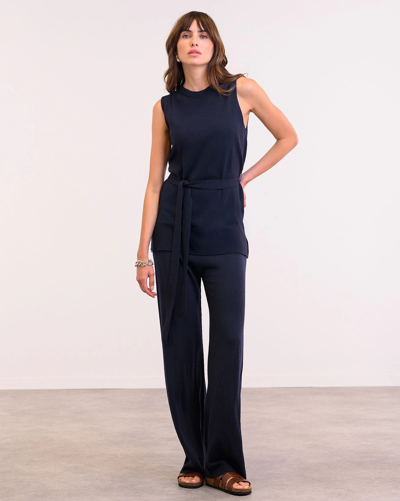 This crew neckline tunic is designed with a neat fit and a self-tie belt for a flattering silhouette. The fine gauge knit offers a lightweight feel, making it perfect for co-ord layering over our Wide Leg Merino Lounge Pants for a sophisticated yet comfortable look.