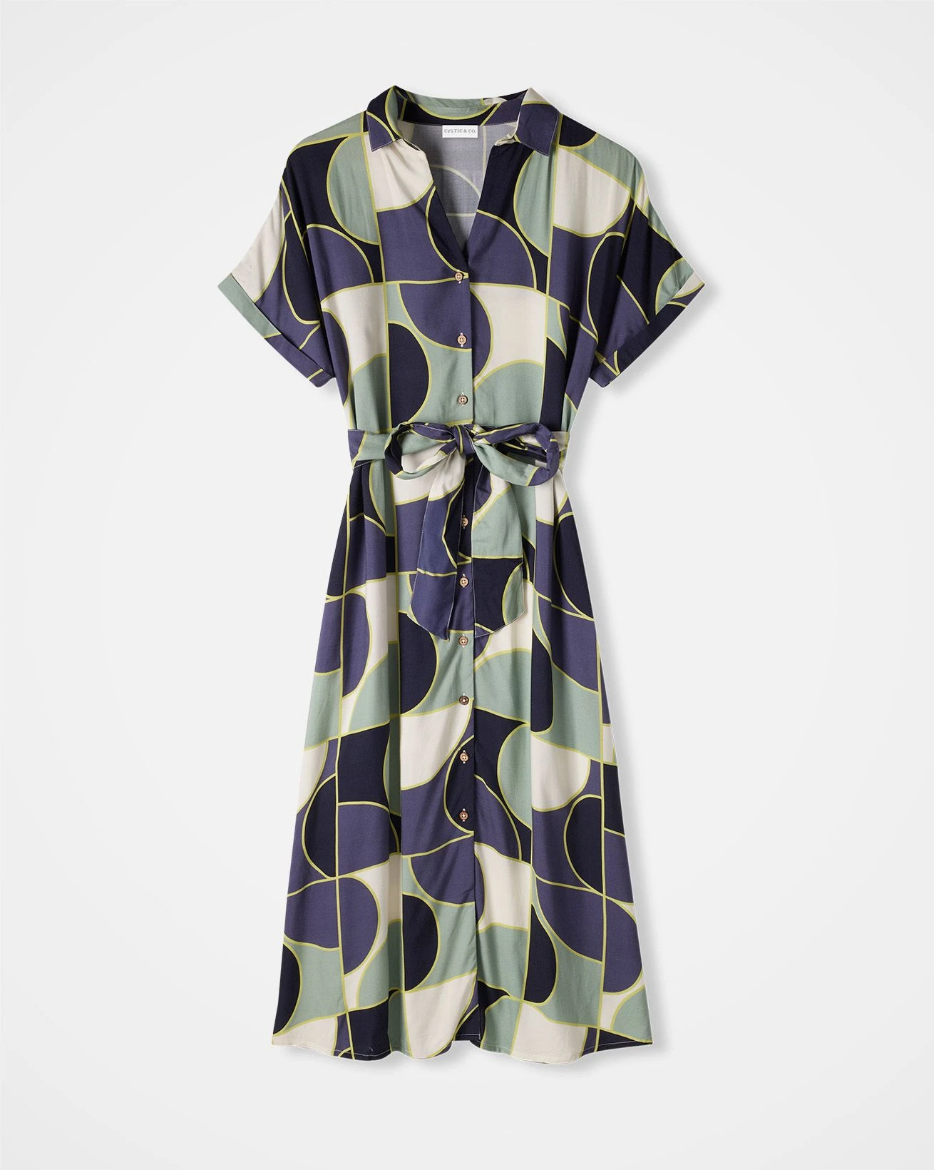 This versatile midi shirt dress features a collared V-neckline and grown-on sleeves with turnback cuffs, along with an easy-to-wear self-tie belt for adjustable styling. A wardrobe staple with a relaxed fit for every occasion.