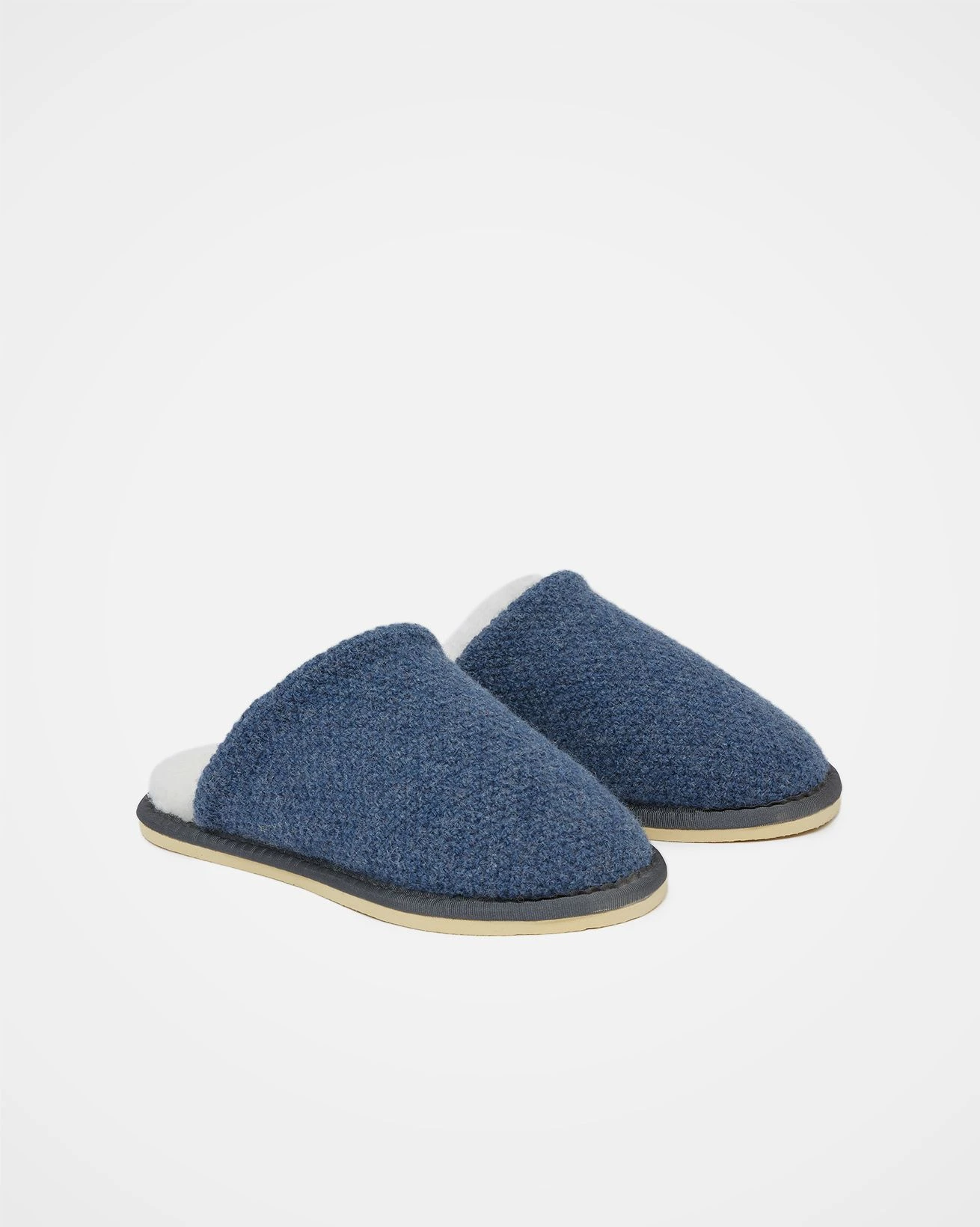 Each pair of slippers is crafted with a textured woollen outer and lined with dreamy shearling, encasing your feet in cloud-soft comfort that you’ll never want to remove.