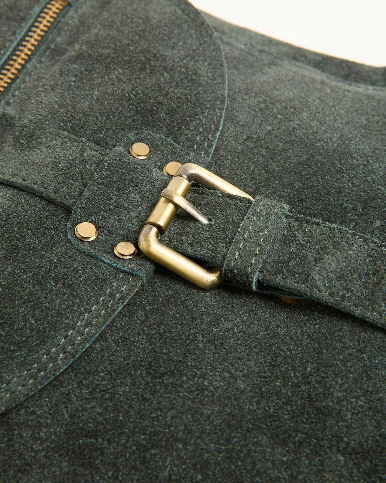 100% leatherAntique-effect metal trimsLeather and webbing adjustable strapFront pocket with magnetic closure and buckle strapZipped and unzipped inner pockets
