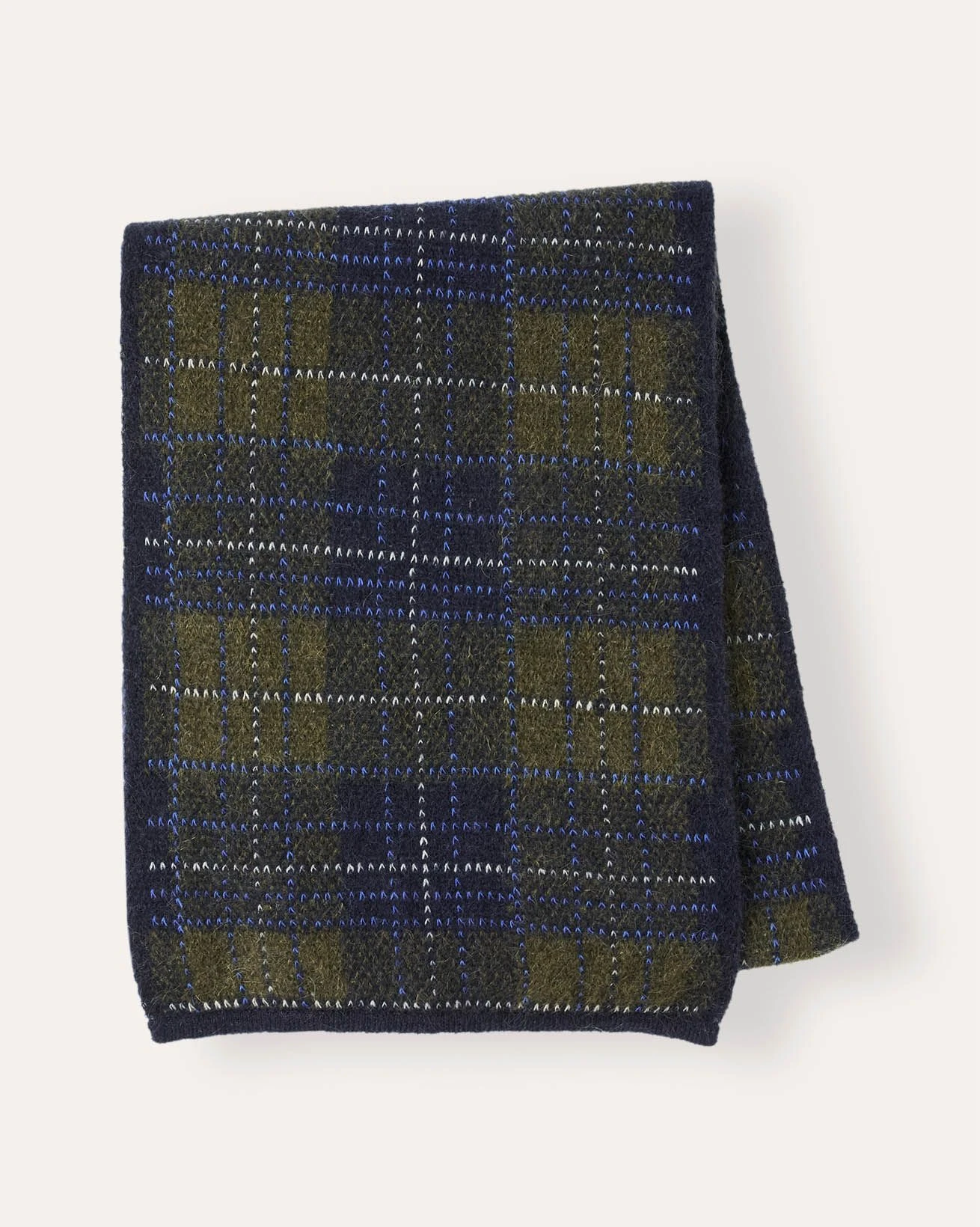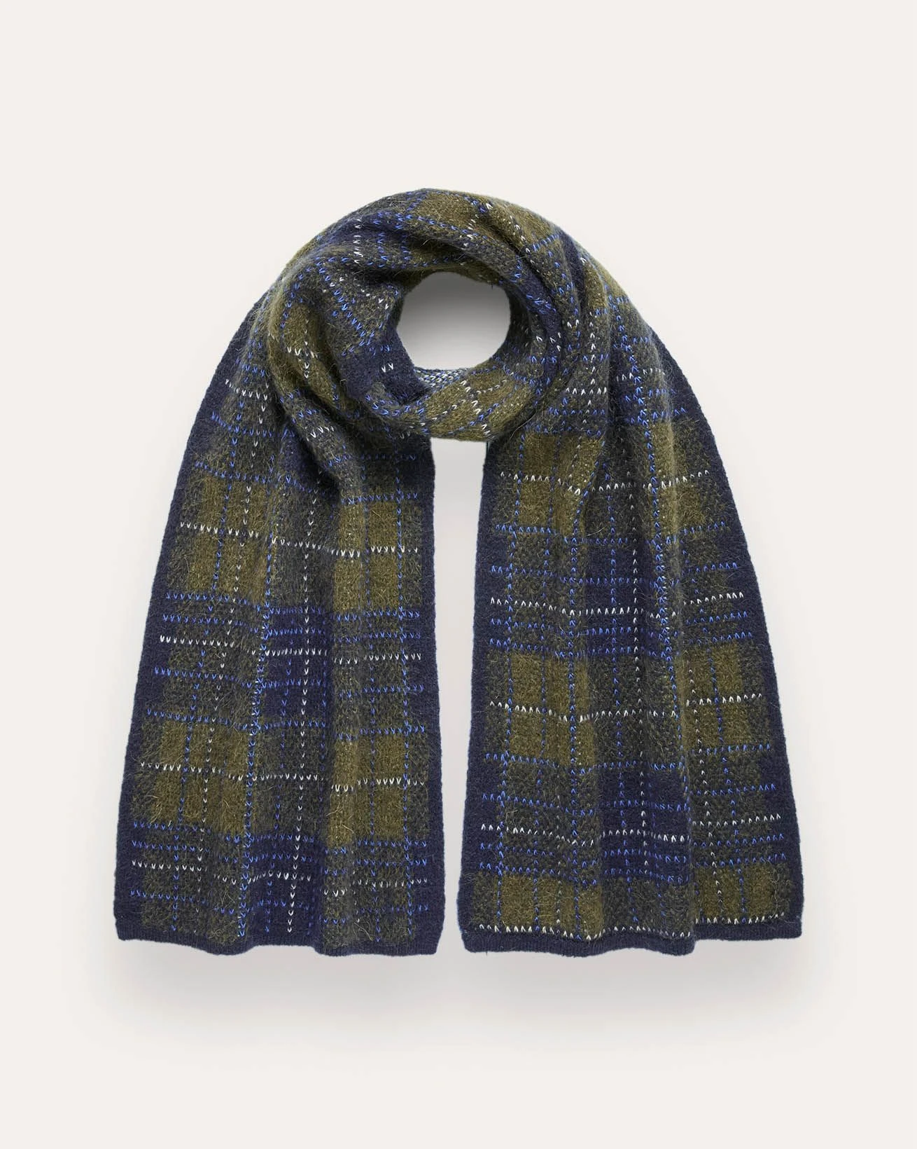 This scarf features a heritage check pattern woven into a soft, lofty blend including mohair for warmth and texture. Thick and cosy, it provides a comfortable layer for cooler days.