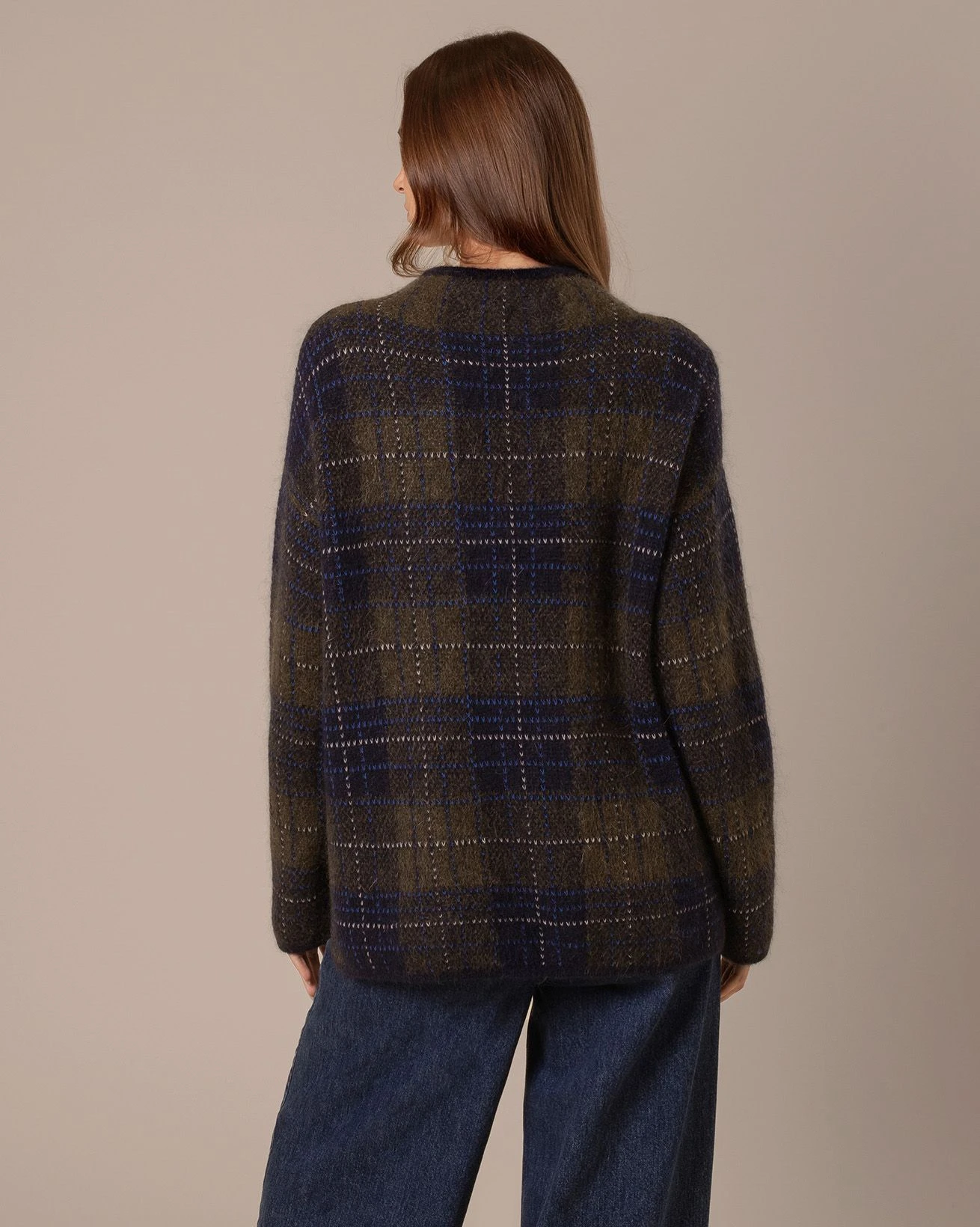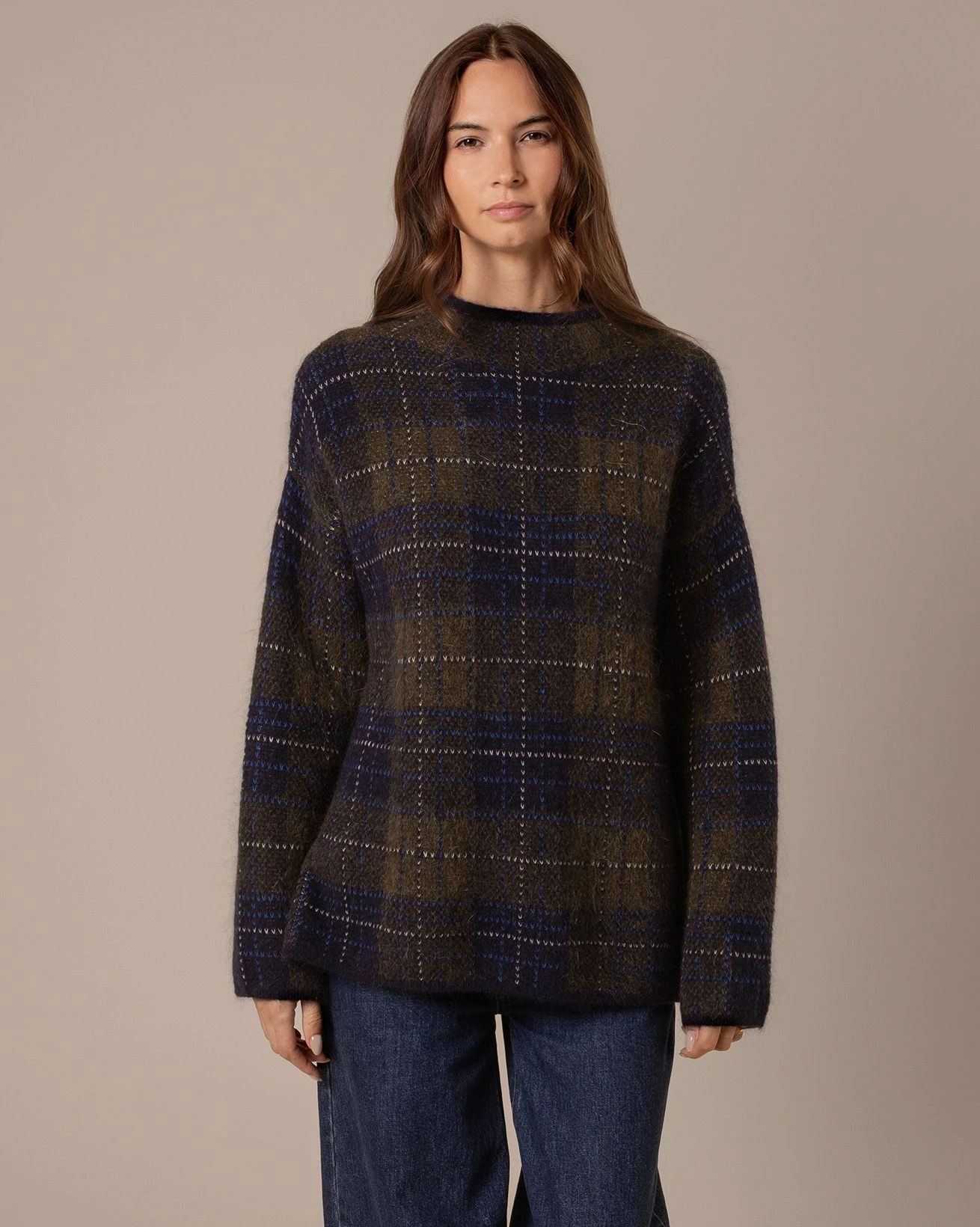 Featuring a heritage-inspired check design, this tunic is crafted with a blend that includes lofty mohair for a thick yet lightweight feel. The fluffy texture, funnel neckline, and side splits offer comfort and ease, while the tunic length and dropped shoulders create a relaxed silhouette.
