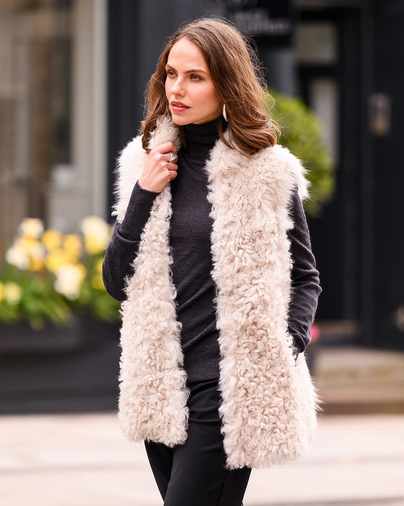 This statement vest is crafted from 100% Toscana shearling. Featuring a cosy funnel neckline, in a fully reversible design made with curly wool for added warmth. Made in Britain, and fastened with hook and eye closures at the front, this characteristic layer is designed to complete your look.