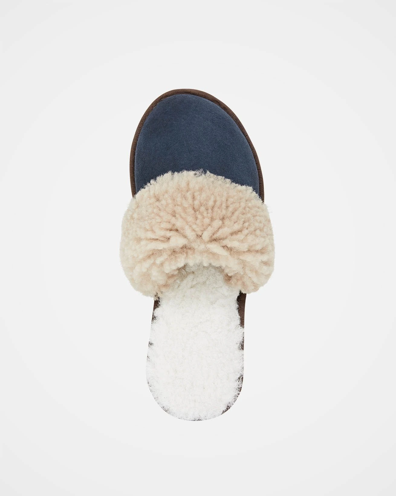 Grosgrain trims add a touch of texture around the indoor/outdoor sole, and the fluffy inner takes pride of place at the turnback cuff.