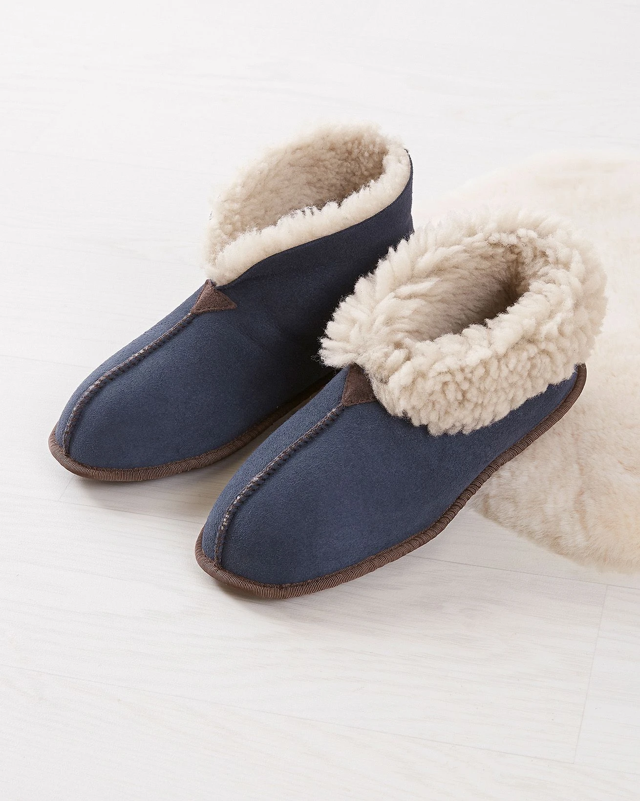 Our bestselling ladies shearling bootee has been given an upgrade, taking soft, cosy slippers to a whole new level. Crafted from 100% British shearling giving a luxurious look and feel, plus natural temperature regulation making them the perfect year-round slipper. Wear turned down to reveal the woollen cuff or rolled up for cosy ankles. New features include a soft suede sole with textured grippy panels on the bottom.
