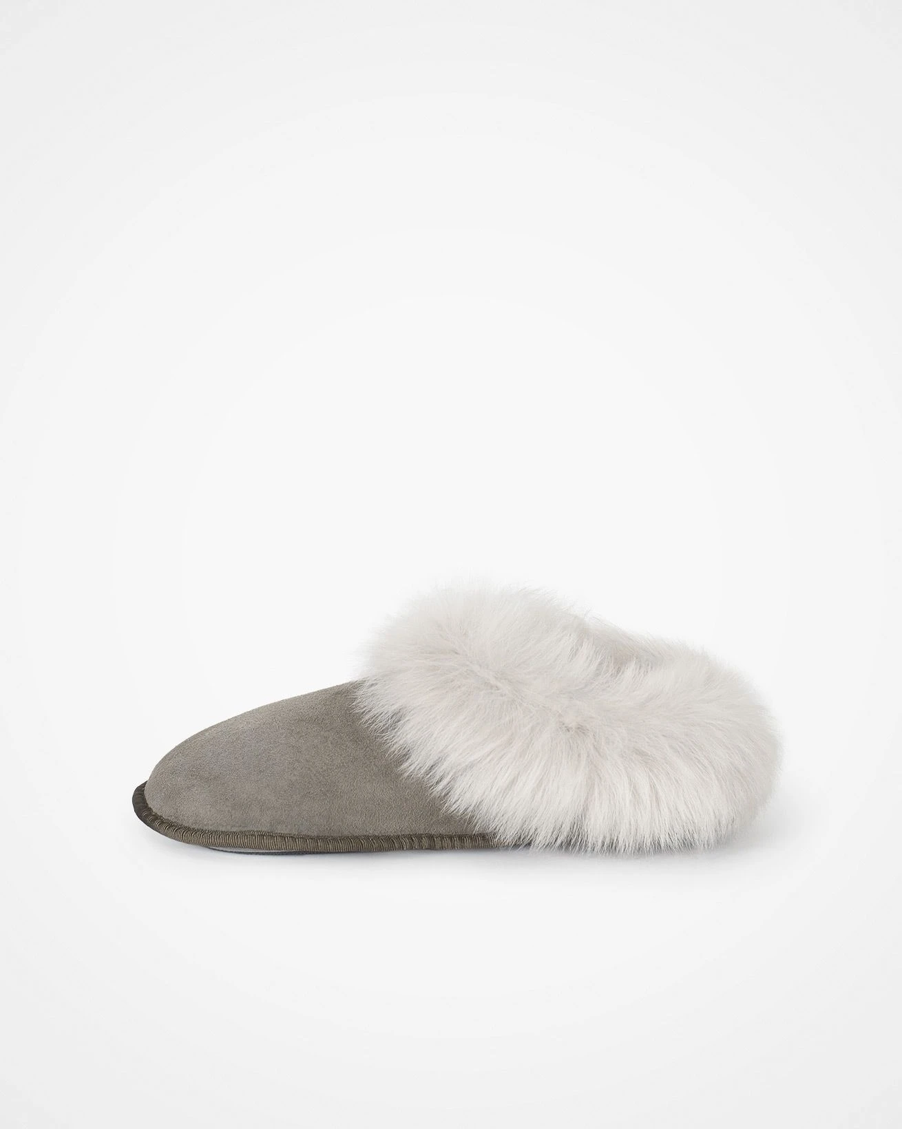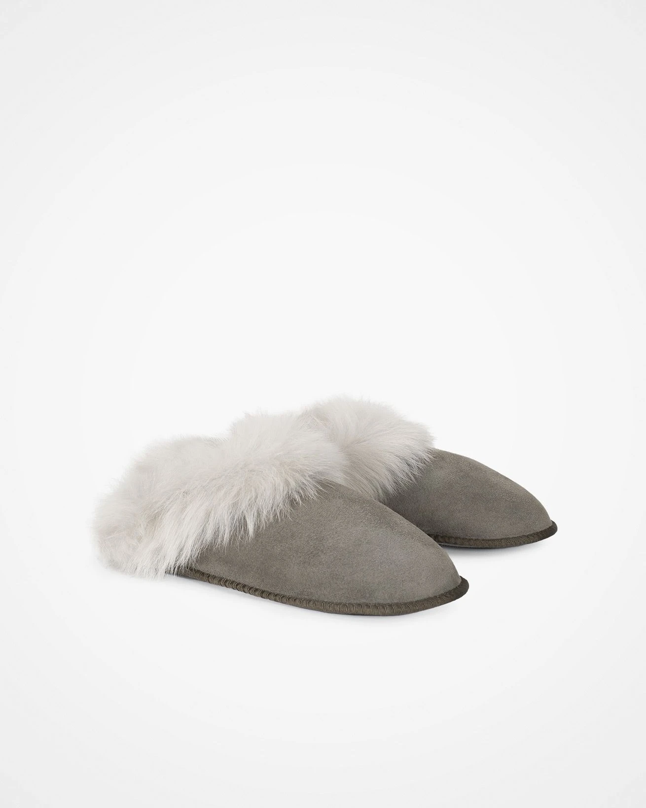 Trimmed with long, silken Toscana fur for gossamer-soft comfort, this pair is designed with a seam-free shape for minimalism. The low back gently hugs the lower heel and the soft sole provides cushioning underfoot.