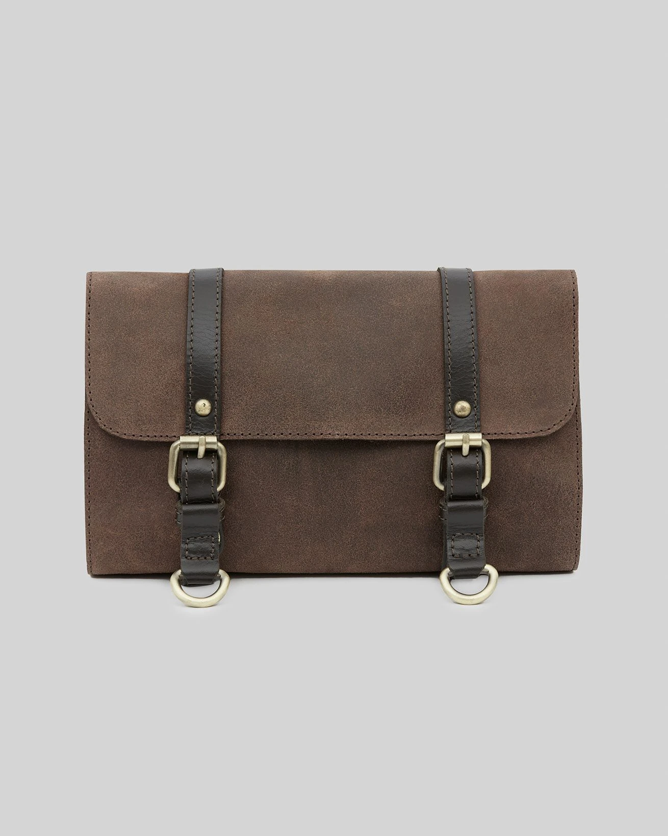 Coordinating with our leather holdall is this rich, oiled leather travel wash bag roll. Featuring contrast darker brown leather straps and antique brass hardware, the wash bag can be unrolled and hung up with D rings for ease of use. Inside there are various compartments for storing toiletries, and it closes with a handy magnetic popper and buckle.